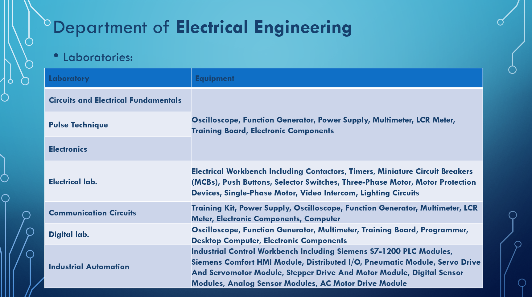 Although the establishment of the Electrical Engineering Department at Ardakan University is relatively recent, thanks to the university administration’s policies and emphasis on providing high-quality education, the department has been able to allocate considerable resources to equip and launch the necessary laboratories and workshops. This is essential for meeting students’ needs in acquiring industry-relevant skills, significantly enhancing the quality of education, and helping Ardakan University fulfill its mission to become a comprehensive, skill-based, and entrepreneurial university.