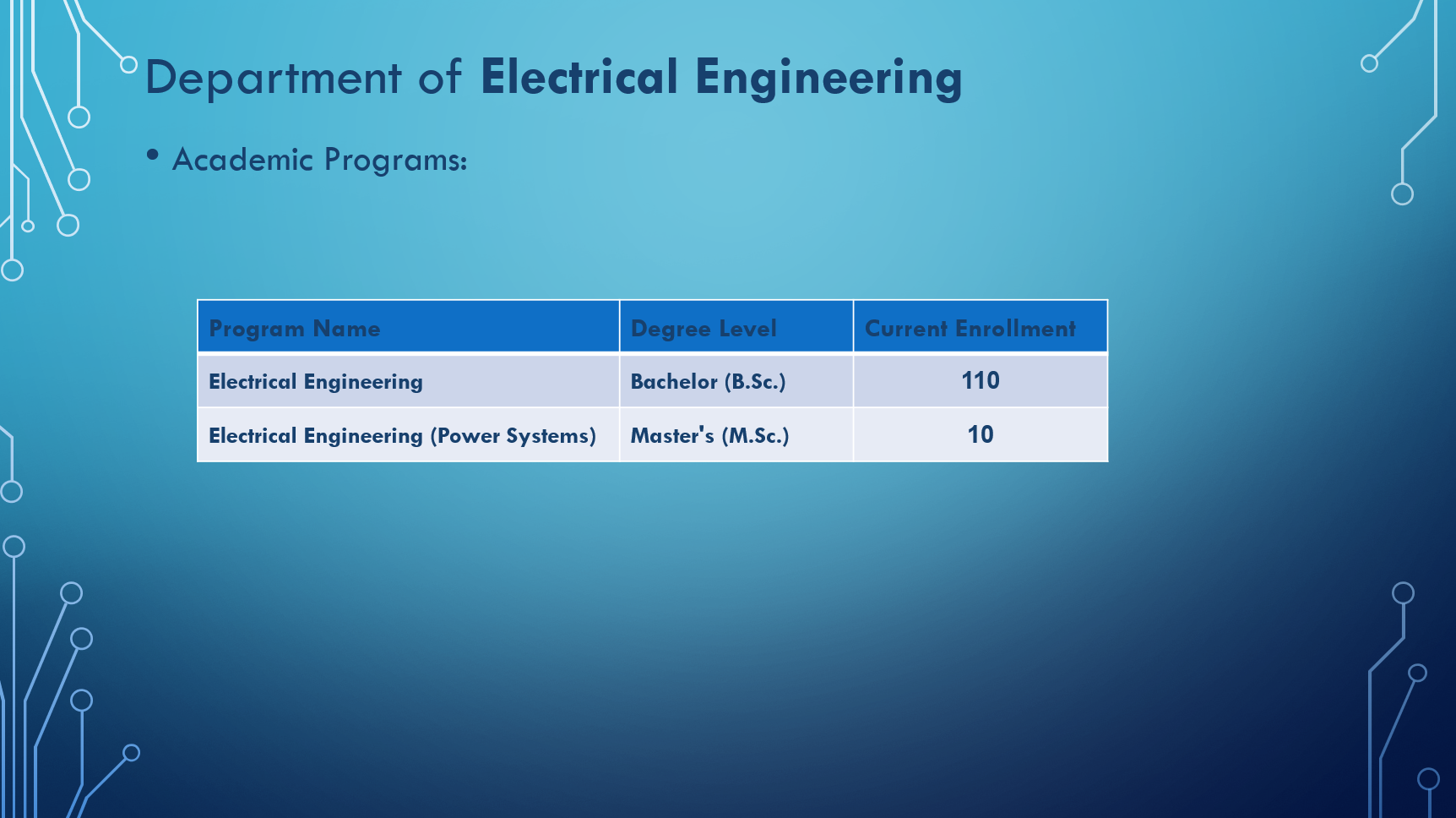The main research activities of the faculty members currently focus on statistical signal processing, the application of various machine learning and deep learning methods for signal processing, vital signal processing and their applications in disease diagnosis and treatment, speech processing, image processing, semiconductor device simulation, power electronics, construction of various power supplies and their industrial applications, industrial automation, protection and relay systems, and more.