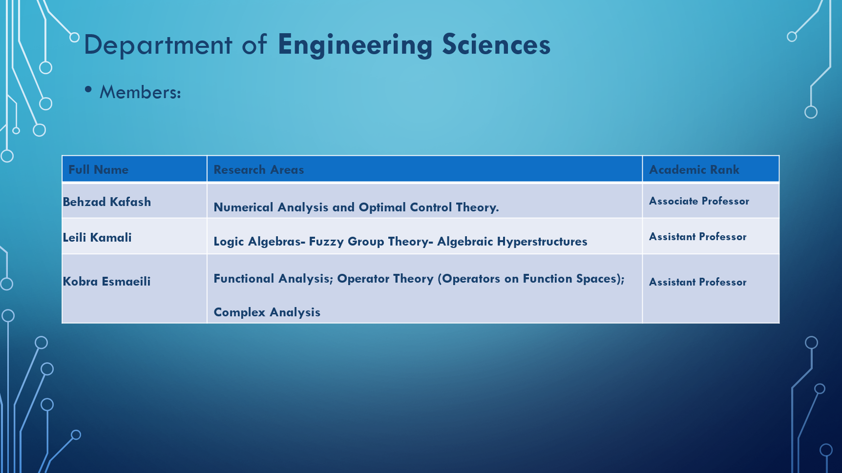Recognizing the importance of this discipline, Ardakan University established the Engineering Science program in 2013 with the approval of the Ministry of Science, Research and Technology. One of the main objectives of this program is to train engineers with a strong background in basic sciences and a deep understanding of engineering techniques and methods, enabling them to lead and conduct interdisciplinary industrial research projects.